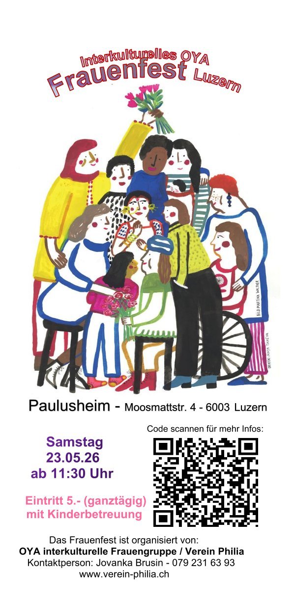 Im Januar 2014 hat sich eine kleine Gruppe von motivierten Frauen gebildet, welche die Organisation eines interkulturellen Frauenfestes zum Internationalen Tag der Frau unentgeltlich in die Hand nehmen wollte. Innerhalb von knapp zwei Monaten wurde ein Konzept ausgearbeitet und umgesetzt, so dass schliesslich am 8. März 2014 über 300 Frauen zusammen einen energiegeladenen, fröhlichen und bunten Abend verbringen konnten um dabei die Rechte der Frauen ins Bewusstsein zu rufen und zu feiern. Denn vielen war klar: dieser Tag soll in Luzern gefeiert werden und Anlass sein, darüber nachzudenken und zu diskutieren, was es bedeutet, Frau zu sein - egal woher aus der Welt Frau kommt. Seit diesem Anfang hat jeden Frühling ein OYA Frauenfest stattgefunden. Diese Anlässe waren stets ein grosser Erfolg – viele Frauen mit verschiedenen Hintergründen und Geschichten konnten zusammenfinden, sich austauschen und vernetzten. Im Laufe der Jahre haben viele Frauen mitgewirkt und geholfen, das Frauenfest zu organisieren. In der Zwischenzeit wurde aus dem Fest auch ein Tag des Empowerments, mit verschiedenen Workshops für Migrantinnen und Frauen, die die Hintergründe der Kulturen verstehen möchten. So wird die Kultur und Bildung auch für die Frauen mit niedrigem oder keinem Budget ermöglicht, gleichzeitig aber auch die Inklusion - ob arm oder reich, ob Schweizerin oder Sans Papiers, ob hell, dunkel oder bunt, alt oder jung - an diesem Tag dürfen wir einfach Frauen sein.