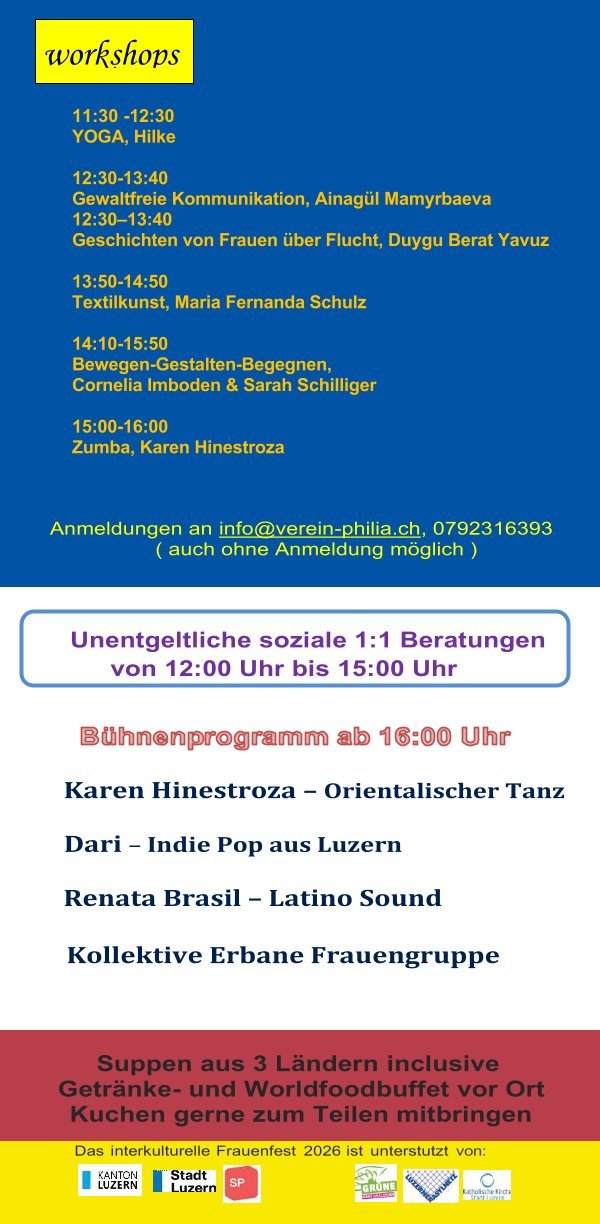 informationen und Anmeldungen: Jovanka Brusin, info@verein-philia.ch, 0792316393